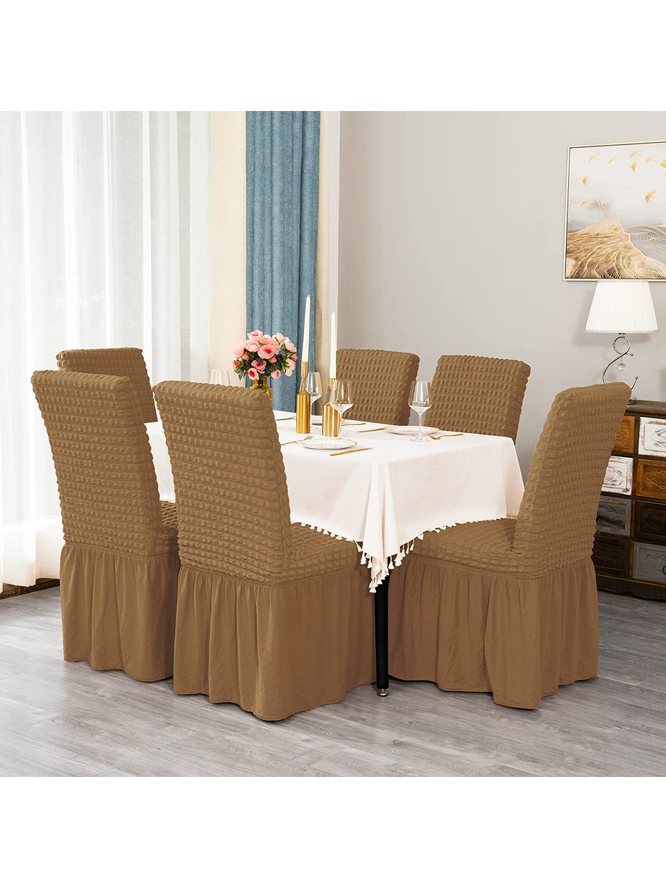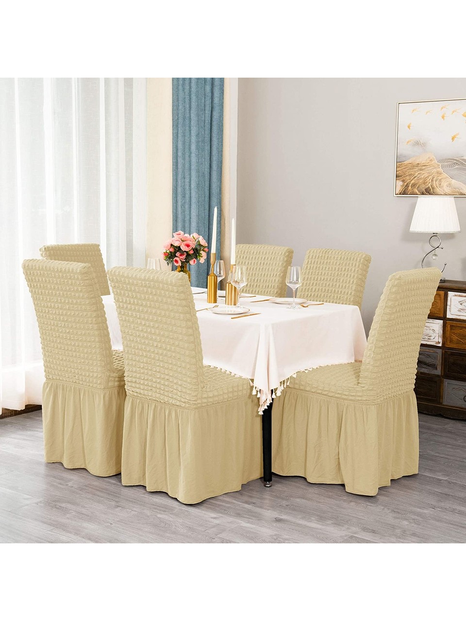 - 6'lı Paket: Aileler için uygun fiyatlı bir çözüm sunan bu kılıf seti, toplamda 6 adet örtüyü içermektedir. Böylece tüm sandalyelerinizi aynı anda yenileyebilirsiniz.