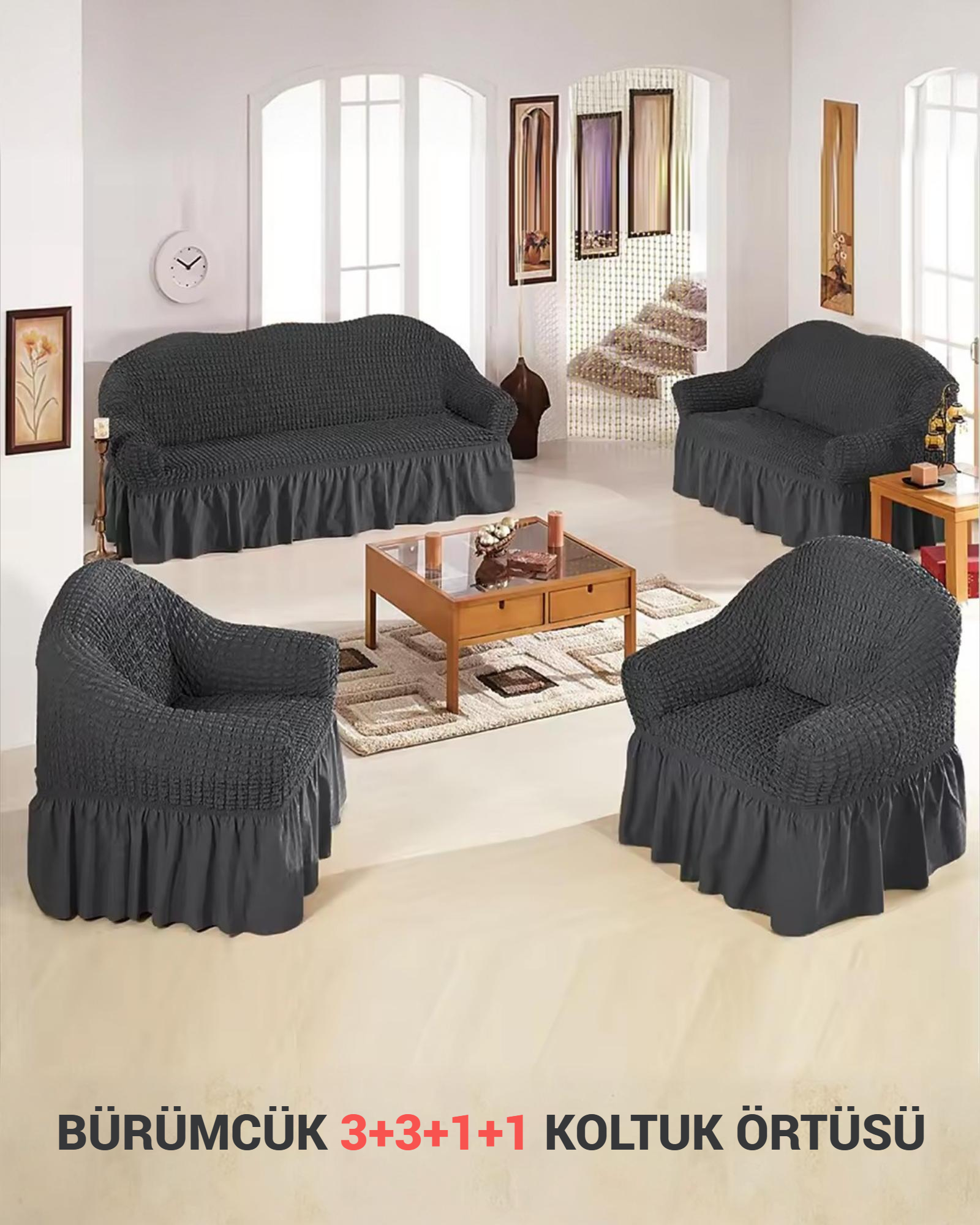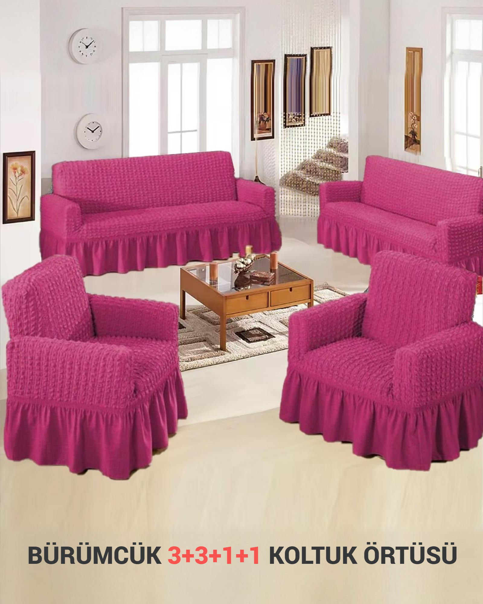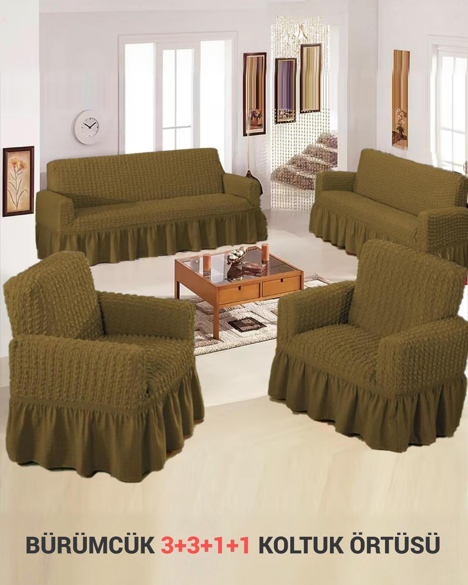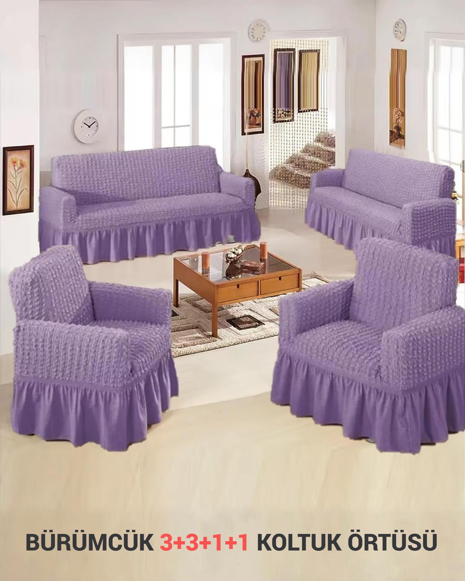Bürümcük Koltuk, Kanepe, Çekyat Örtüsü ve Lastikli Koltuk Kılıfı 3311TAKIM, modern tasarımı ve fonksiyonel yapısıyla evinize değer katacak. Göz alıcı detayları ve kaliteli malzemeleriyle uzun yıllar boyunca kullanabileceğiniz bu ürünü mutlaka deneyin. Konforu ve şıklığı bir arada sunan bu ürünü, her anınızda yanınızda taşımak için sabırsızlanacaksınız!