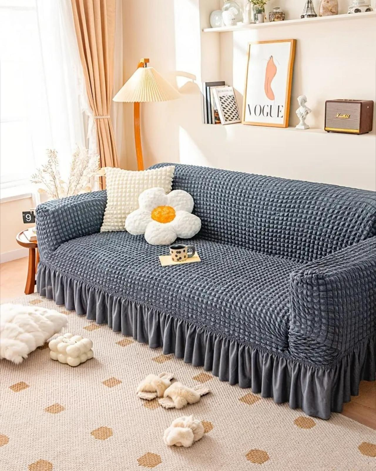 Ev dekorasyonunda fark yaratmak ve koltuklarınızı korumak istiyorsanız, Bürümcük Lastikli Kanepe Örtüsü, ideal bir tercihtir. Şimdi al, yaşam alanını yenile!