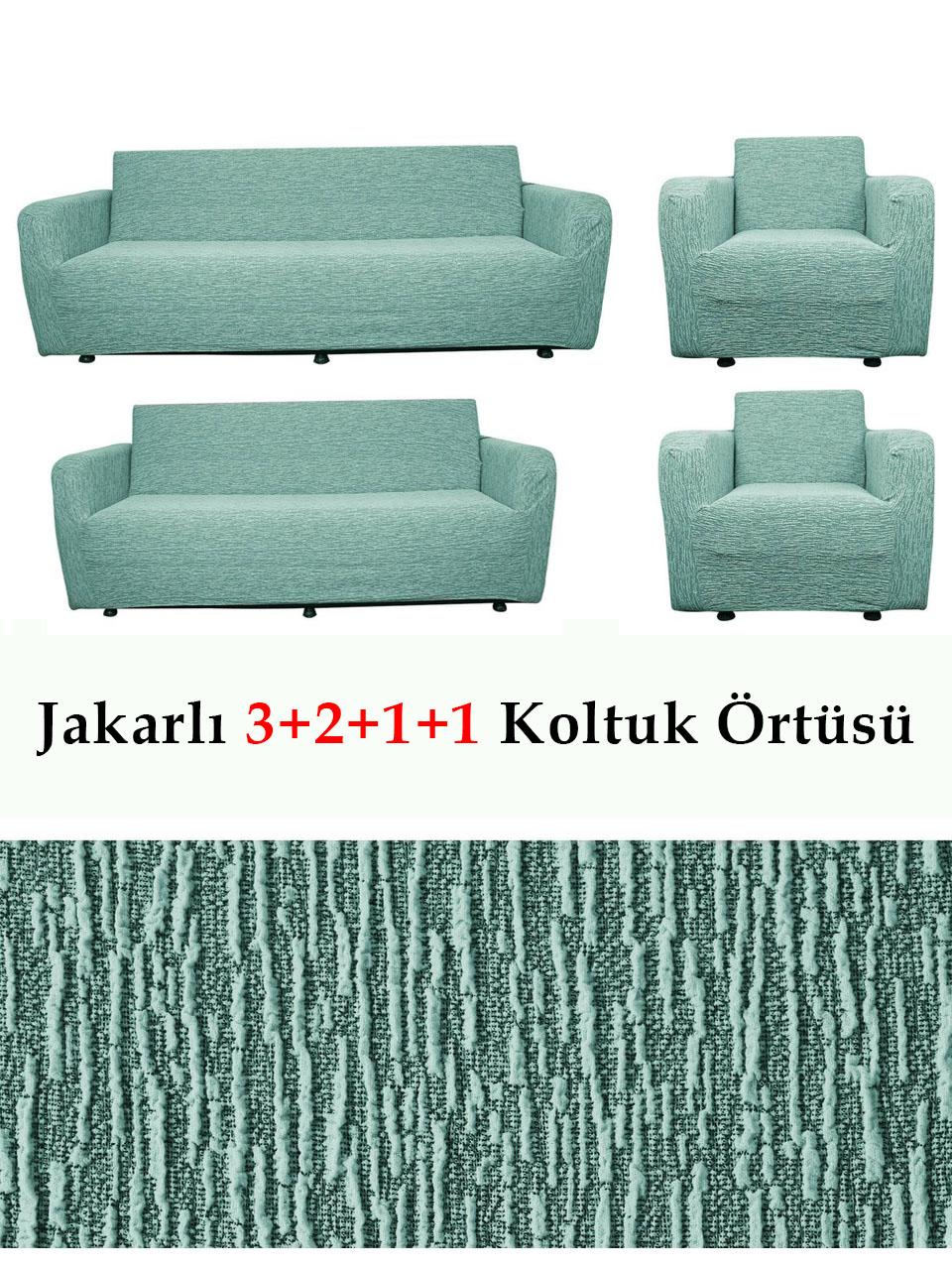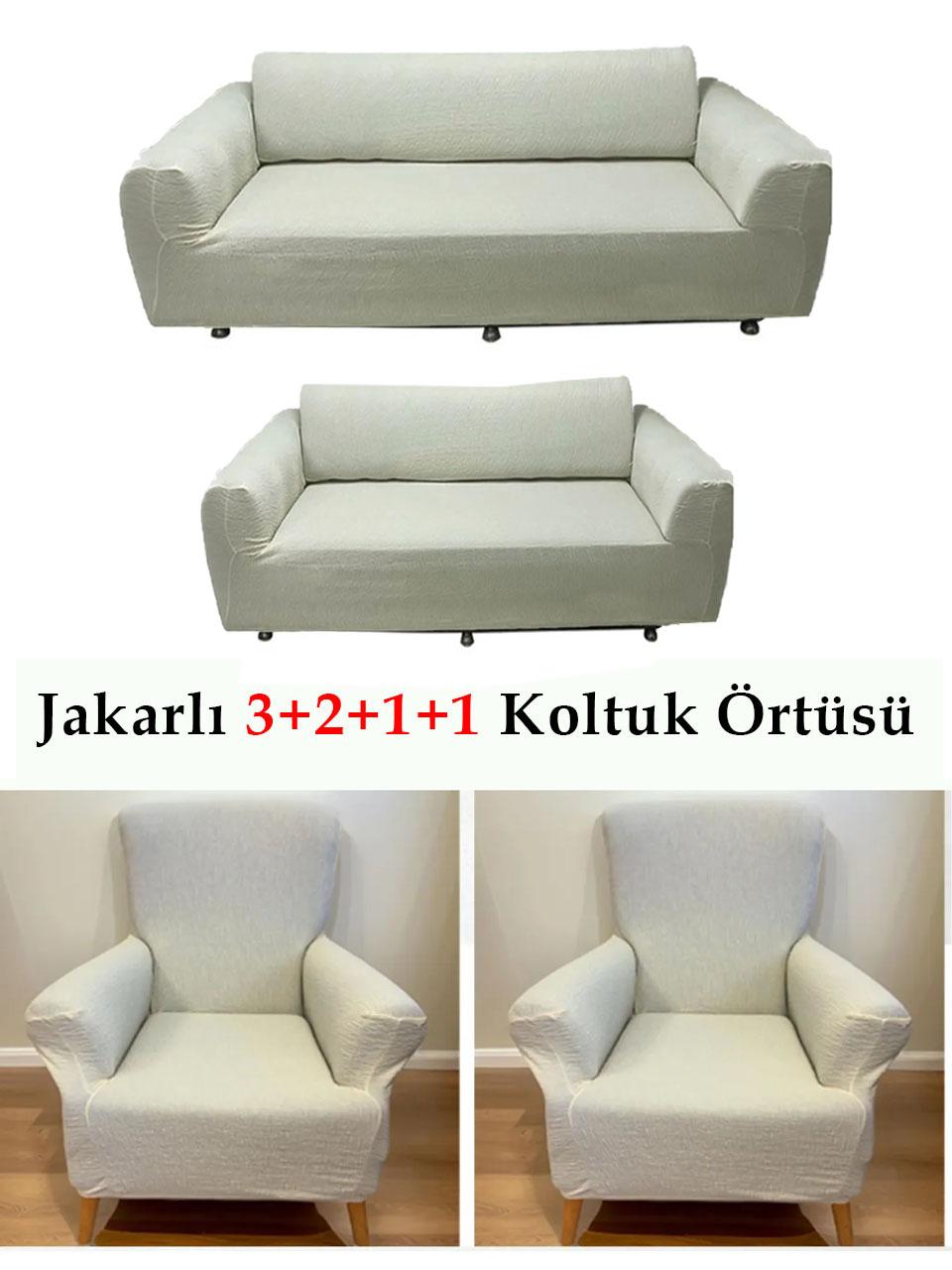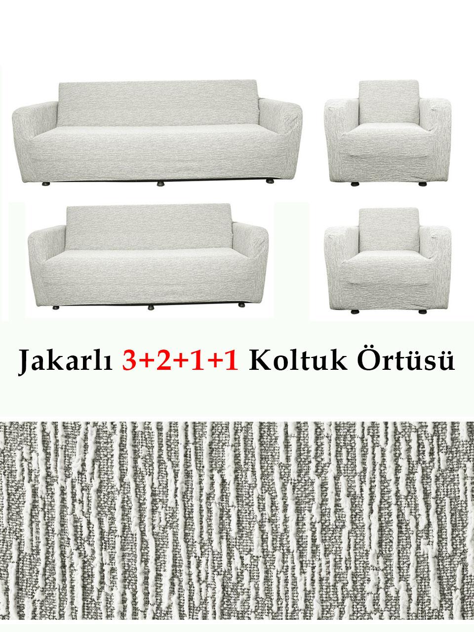 Jakarlı Çubuk, Düz Desen 3 2 1 1 Lastikli Koltuk, Kanepe, Çekyat Örtüsü, Kılıfı Esnekli