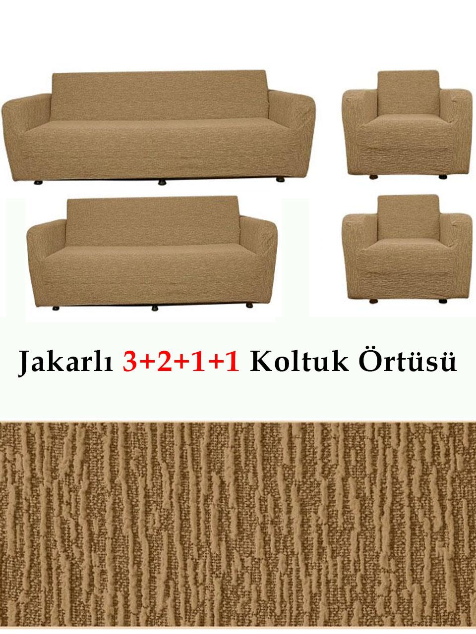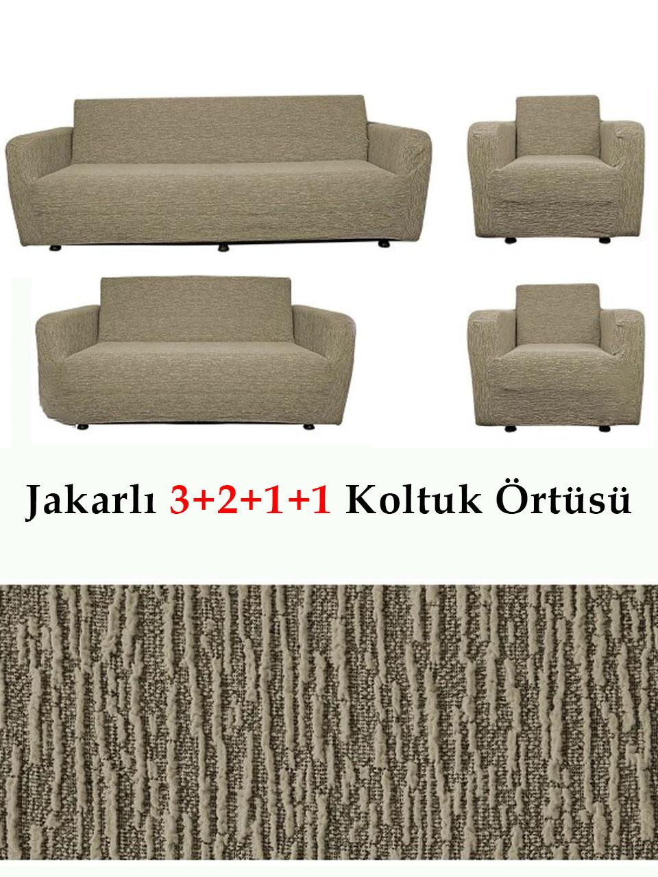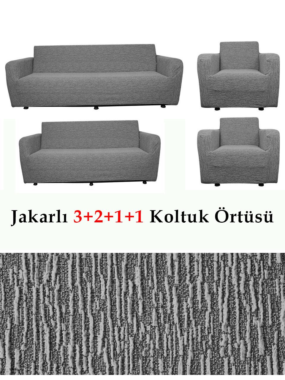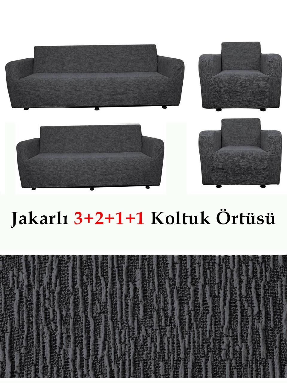 Jakarlı Çubuk, Düz Desen 3 2 1 1 Lastikli Koltuk, Kanepe, Çekyat Örtüsü, Kılıfı Esnekli