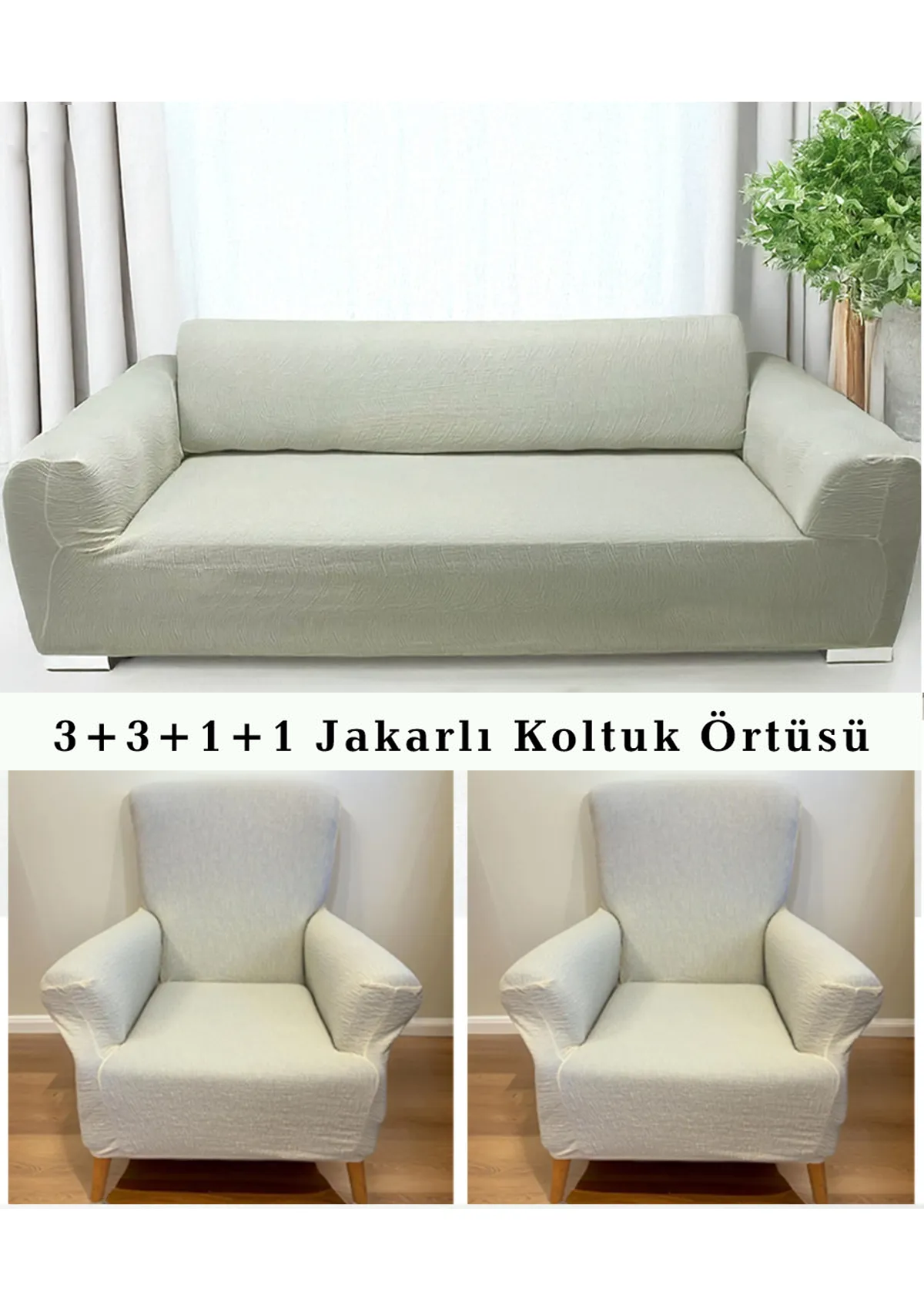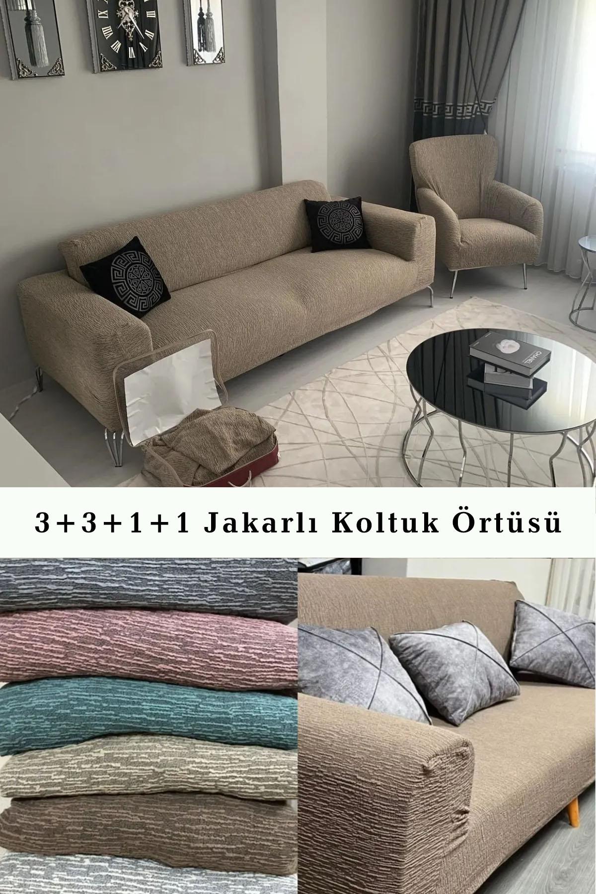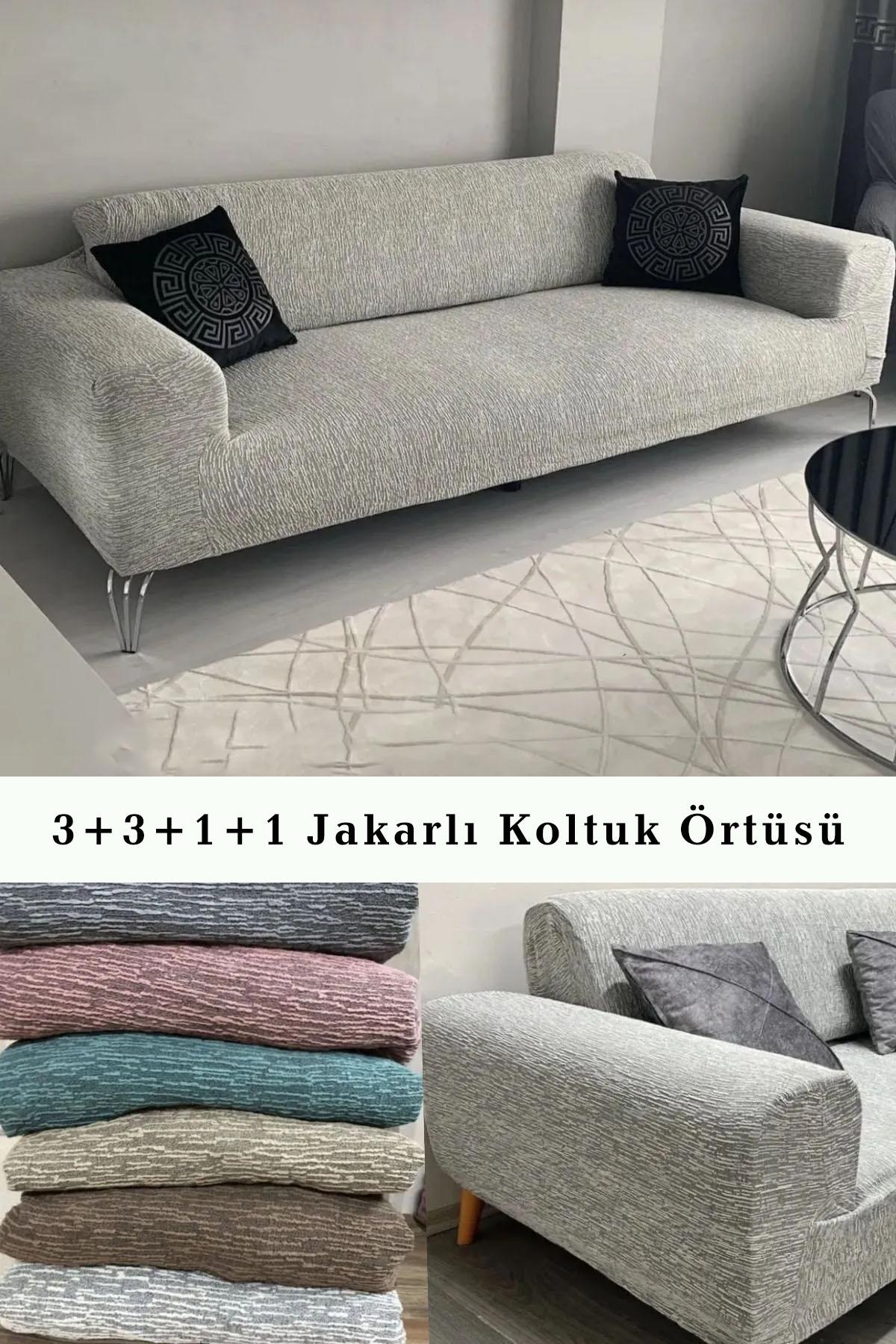 Jakarlı Koltuk Örtüsü 3 3 1 1 Takımı Lastikli Esnek Yıkanabilir Çekyat Kanepe Kılıfı