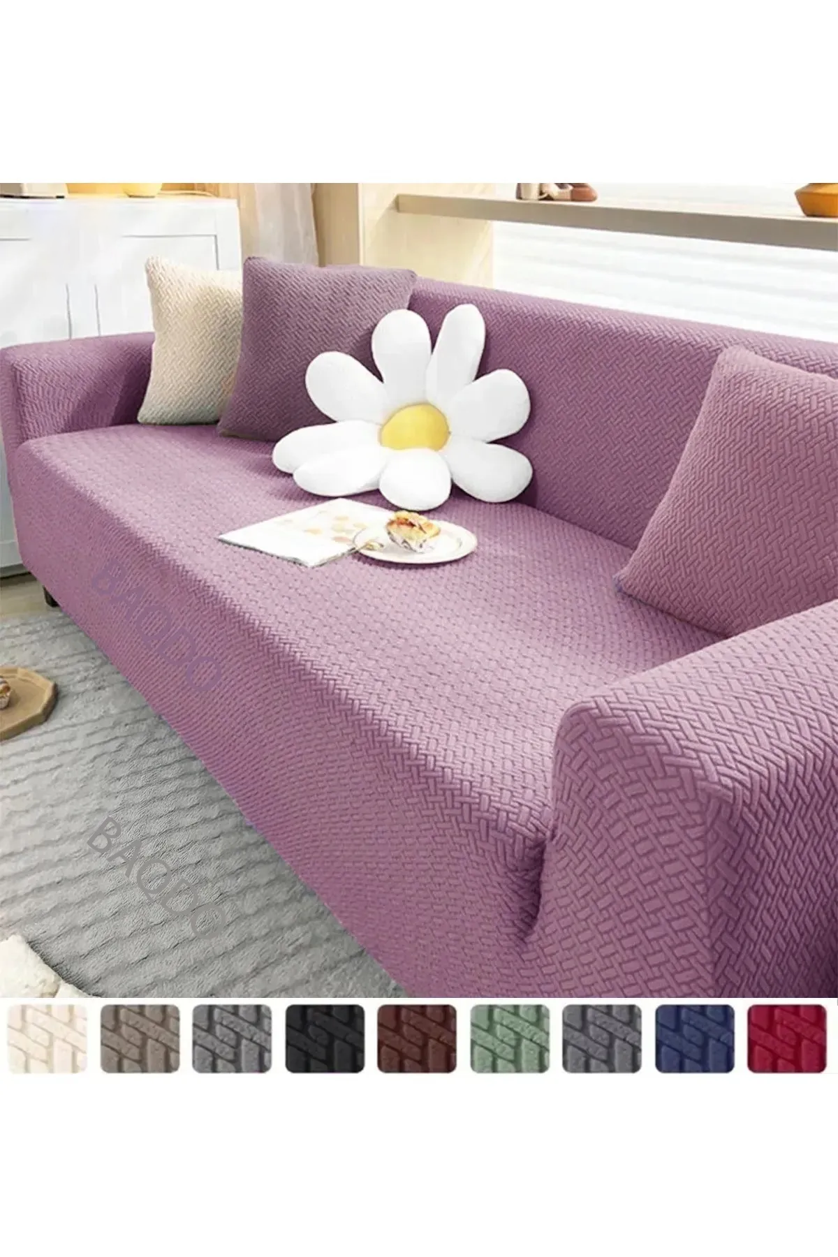 - Upmall Jakarlı Tuğla Desen Koltuk Örtüsü Çekyat Kanepe Kılıfı Lastikli Kayma Yapmayan 3 Kişilik
