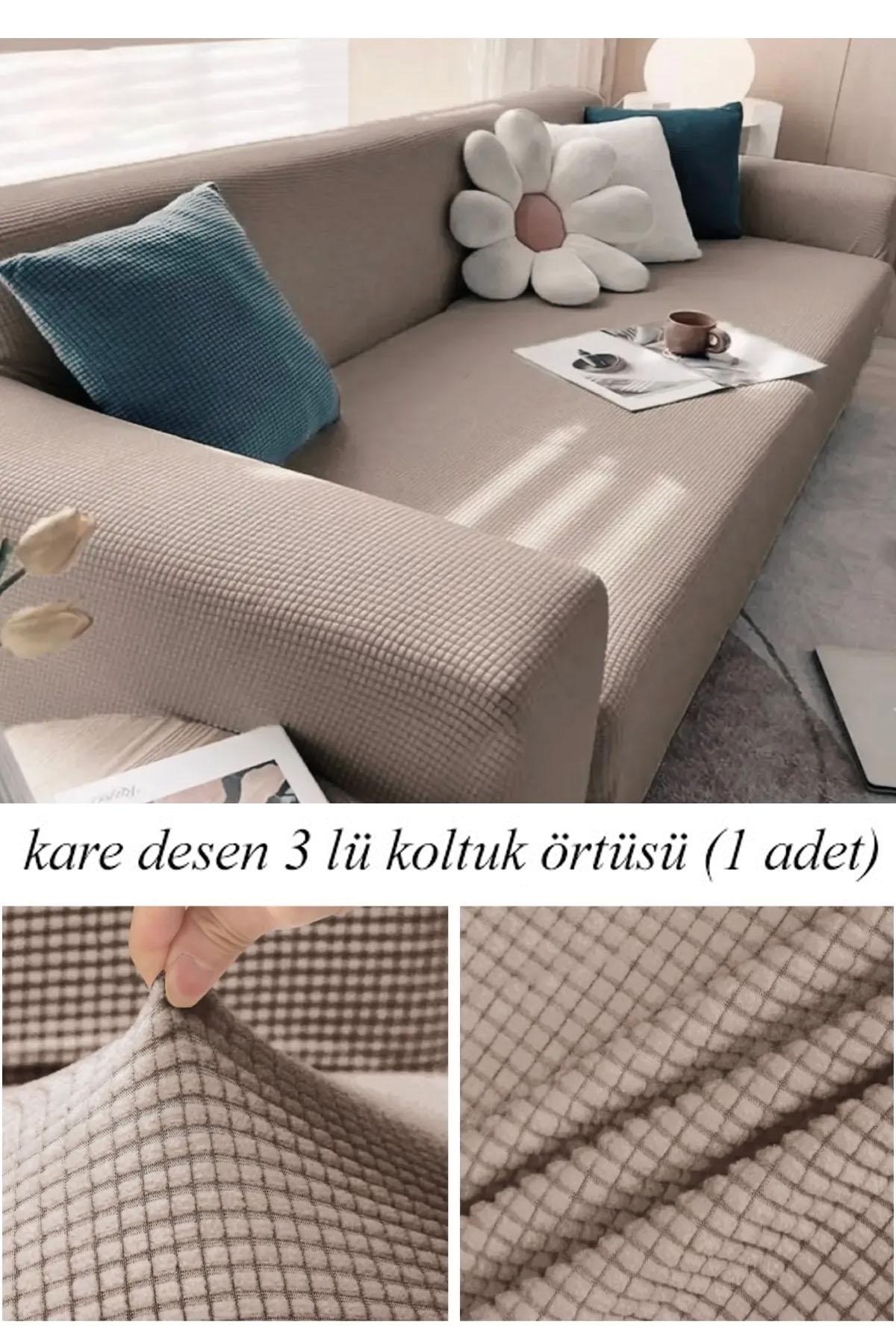 Upmall Streç Lastikli Esnek Yikanabilir Kare Desen Berjer Üç Kişilik Koltuk Örtüsü Koltuk Kılıfı (Bir Adet)