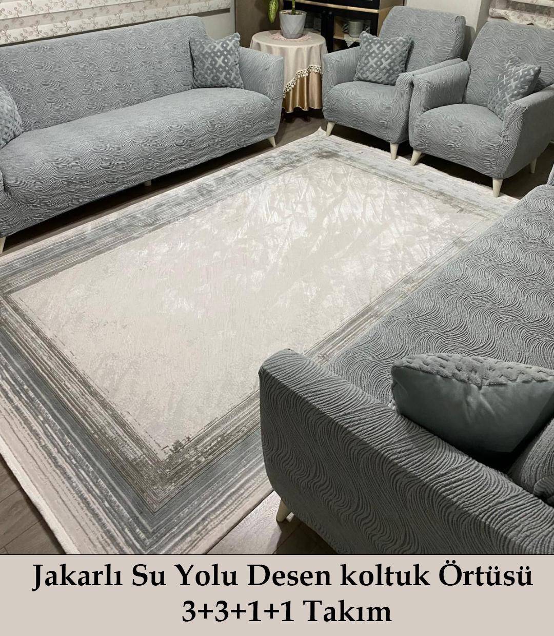 - Su yolu desenleriyle modern ve şık bir görünüm sunan jakarlı koltuk örtüsü, mekanınıza estetik bir dokunuş katıyor.