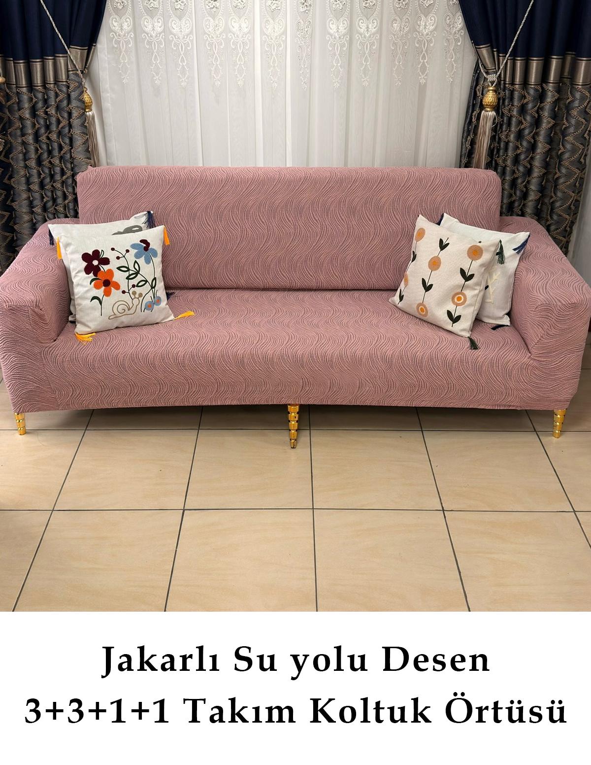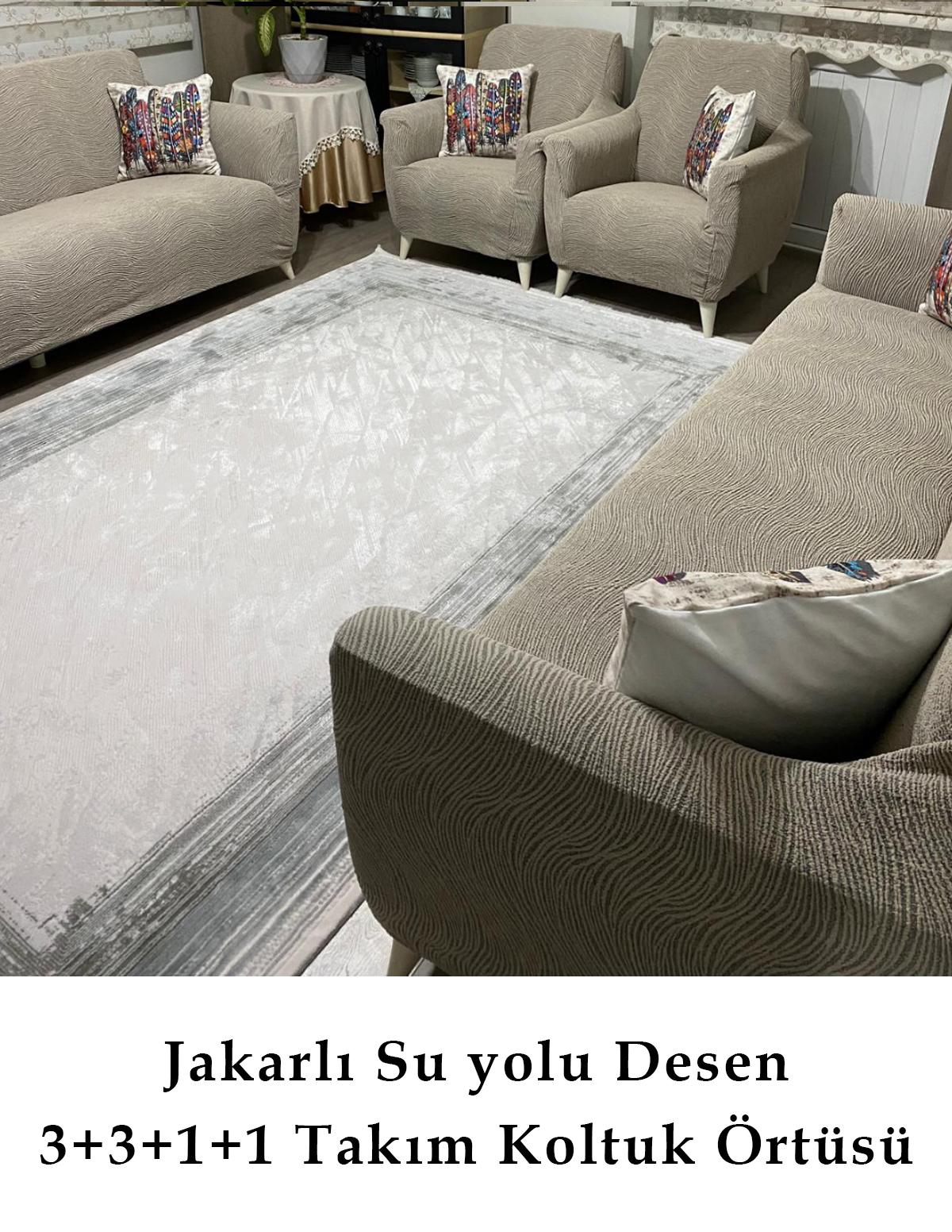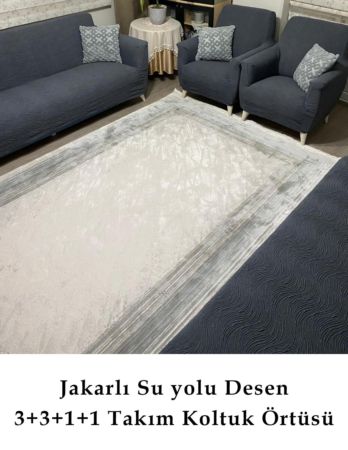 - Su yolu desenleriyle modern ve şık bir görünüm sunan jakarlı koltuk örtüsü, mekanınıza estetik bir dokunuş katıyor.