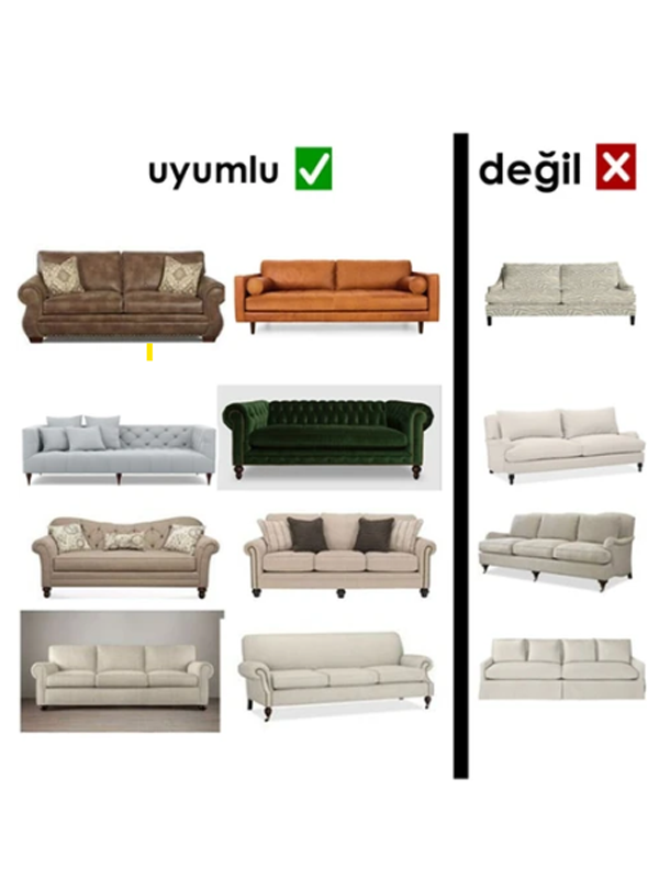 - 3lü kılıf ölçüsü: 185cm den 230 cm ye kadar uzunluktaki koltuklara uyumludur