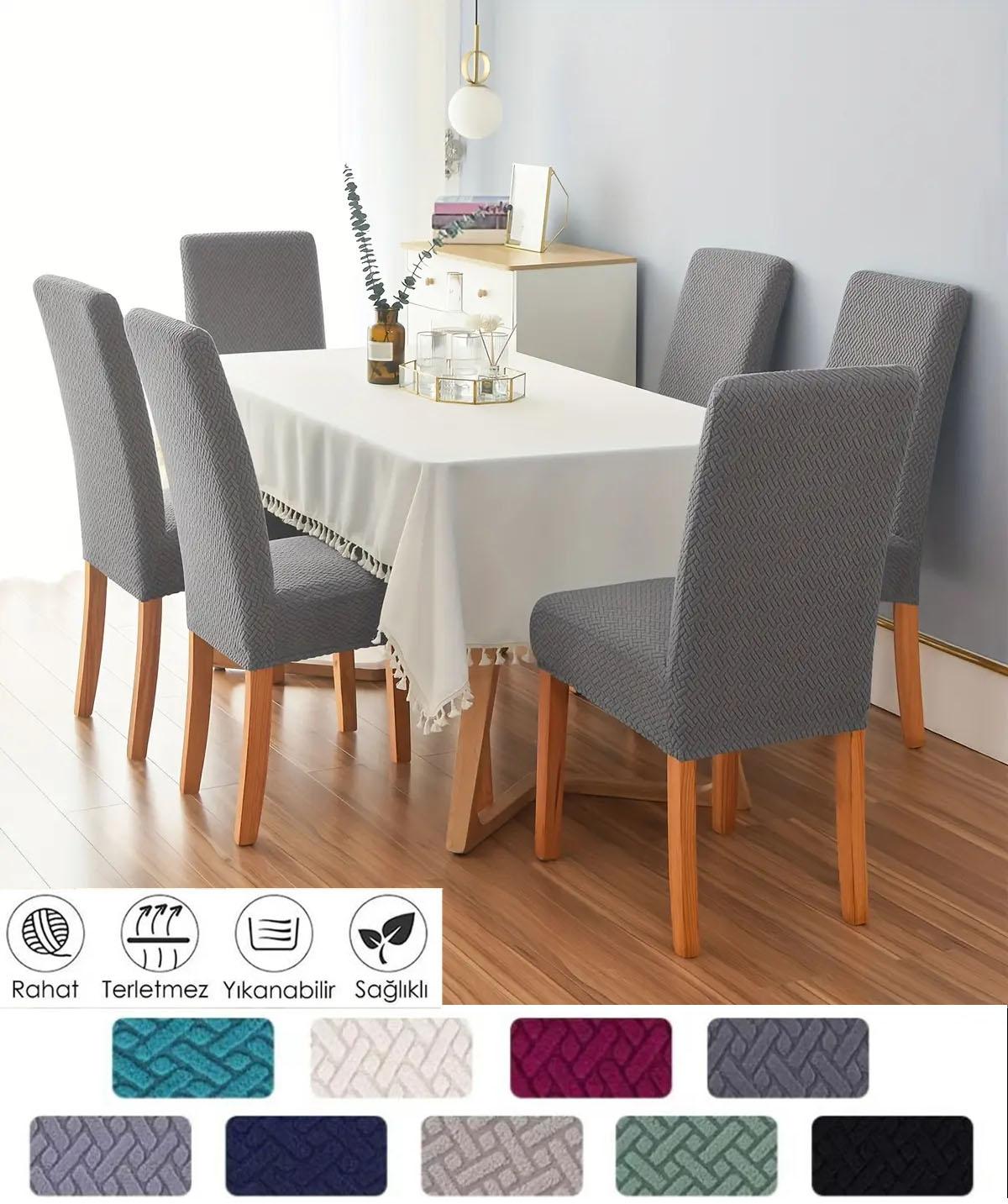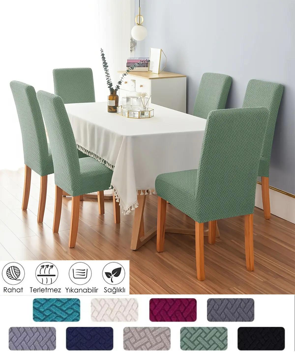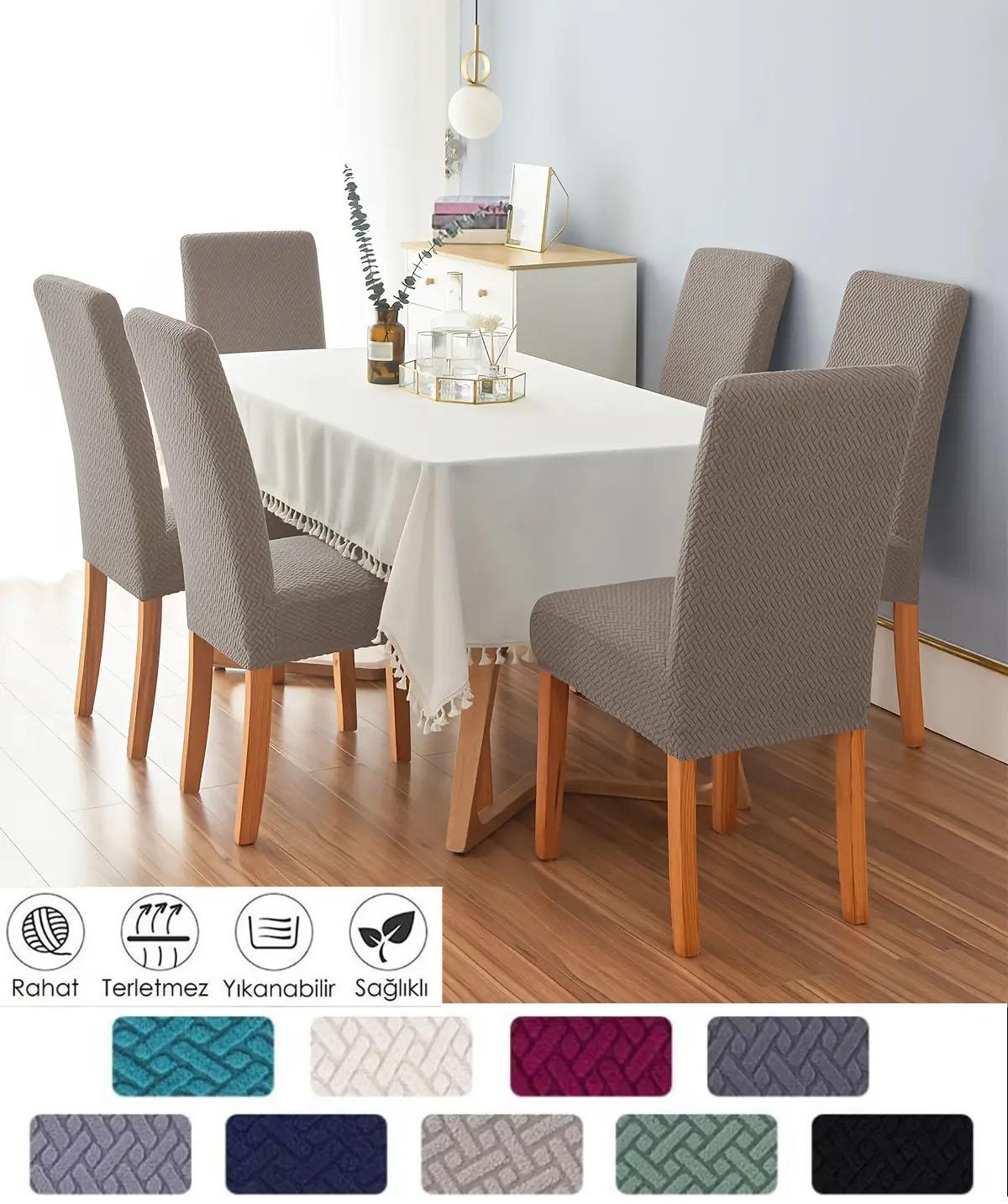 Tuğla desen sandalye kılıfı likrali esnek yikanabilir sandalye örtüsü ( 6 adet )